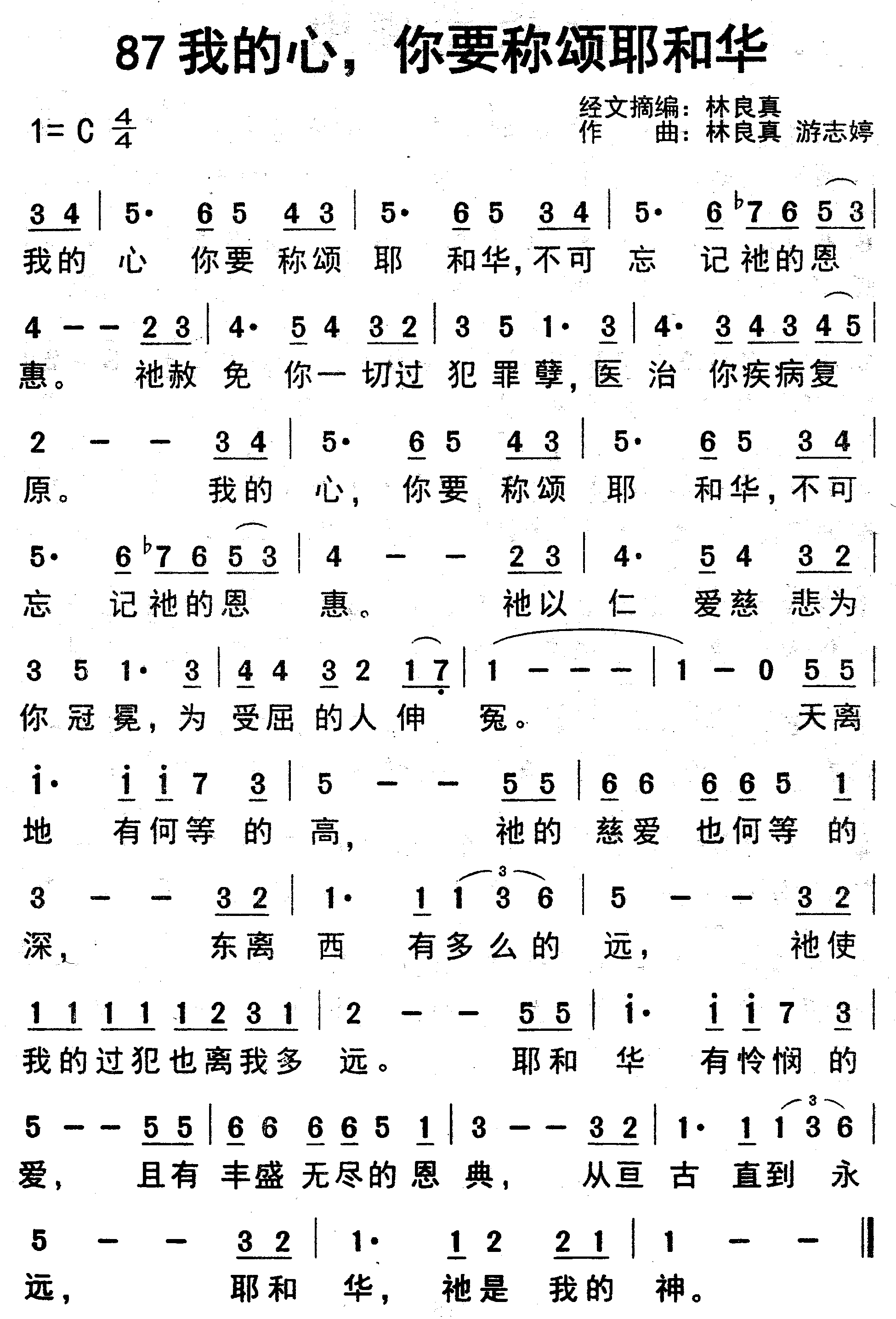 我的心 你要称颂耶和华