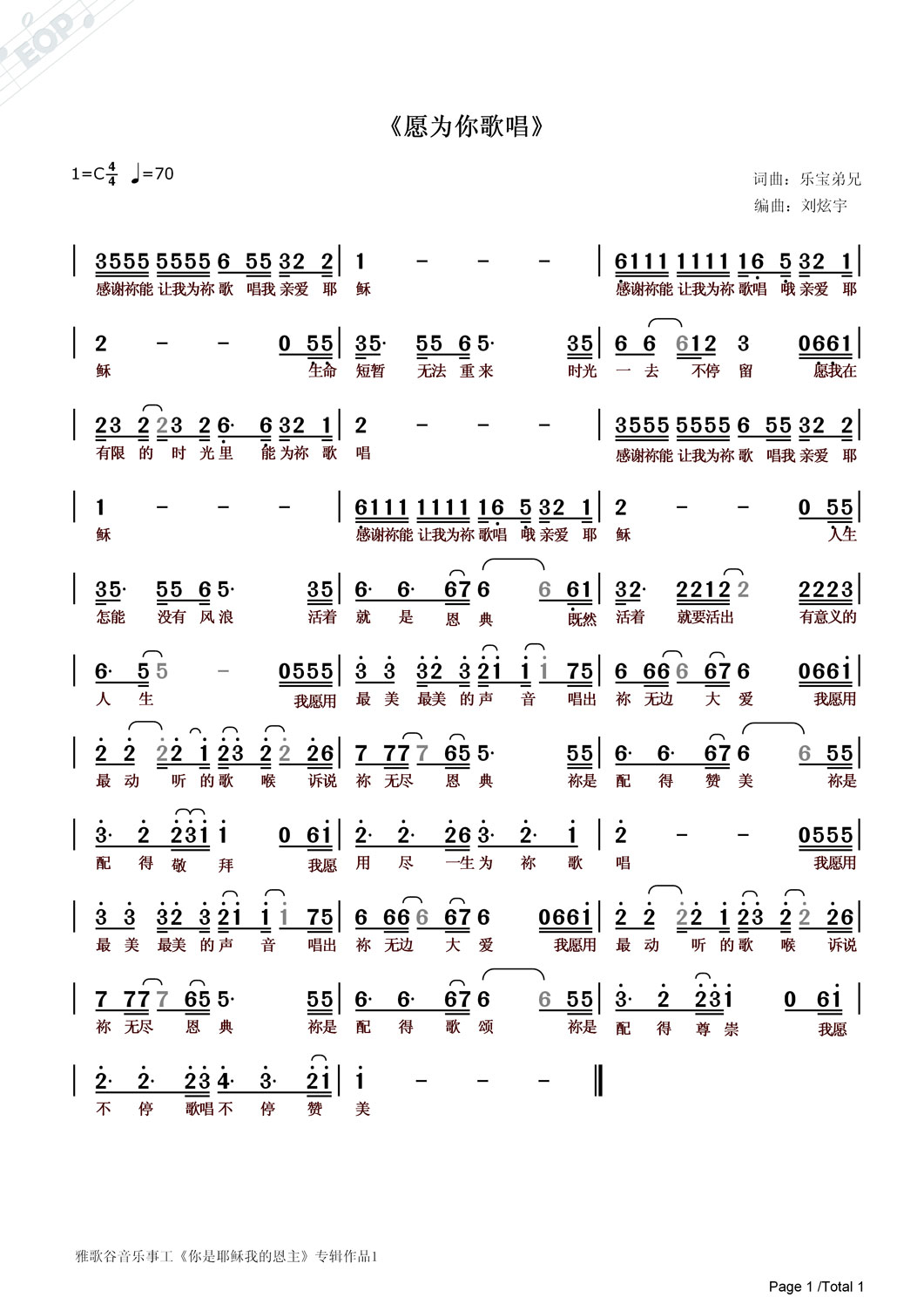 我愿不停歌唱不停赞美