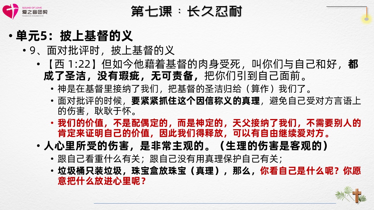 07-5 披上主的义 别人批评我们几句,我们就爱不下去了,如何应用“因信称义”的真理